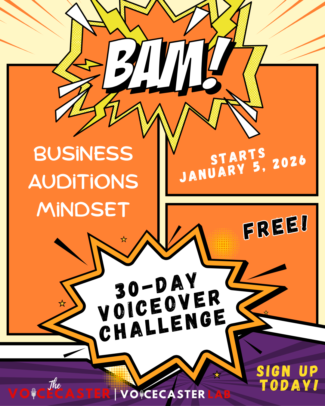 You’re officially part of the FREE Voicecaster Lab BAM! VO Challenge... 30 days of transformation for your Business, Auditions, and Mindset.